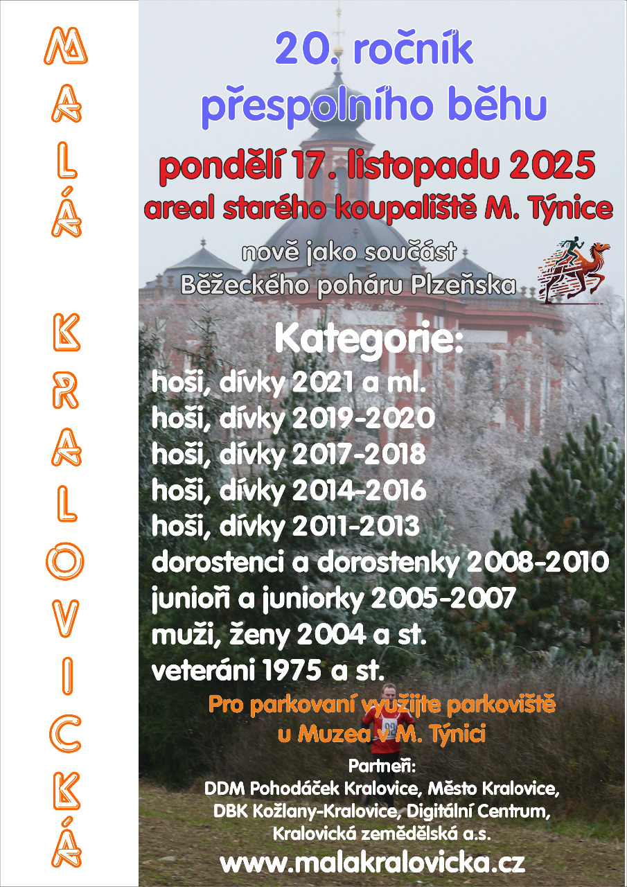 A jelikož se mění trasy, tak zveřejňujeme zatím pouze plakát. Propozice budou po víkendu 18.-19.10. kdy se nové tratě proměří a budeme vědět skutečné vzdálenosti.